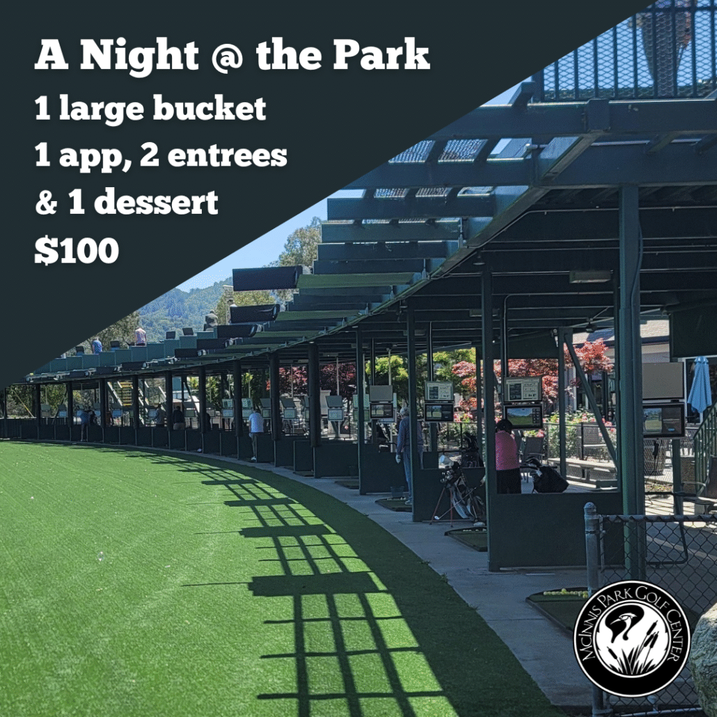 Share a bucket of balls at the range before enjoying dinner at The Club Restaurant. Good for a large bucket of balls, an appetizer, 2 entrees and a dessert.