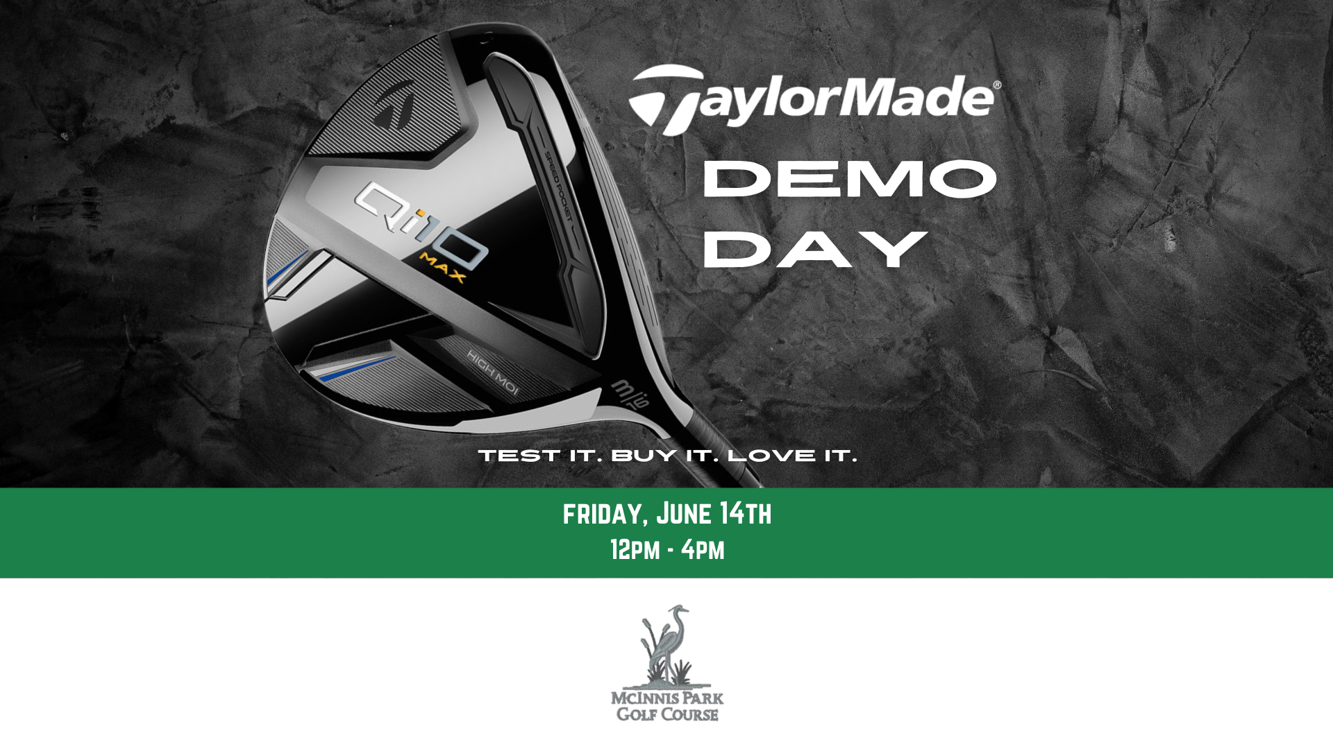 Gear up for TaylorMade Demo Day at McInnis Golf Park on Saturday, June 14th from noon to 4:00 PM! ️♀️️♂️